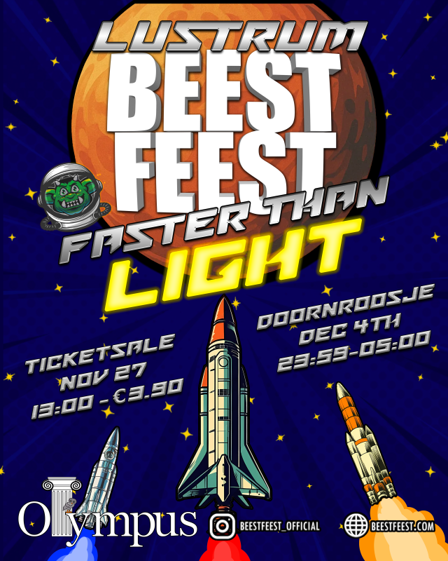 So join us December 4th for our very special lustrum BeestFeest: Faster than light.