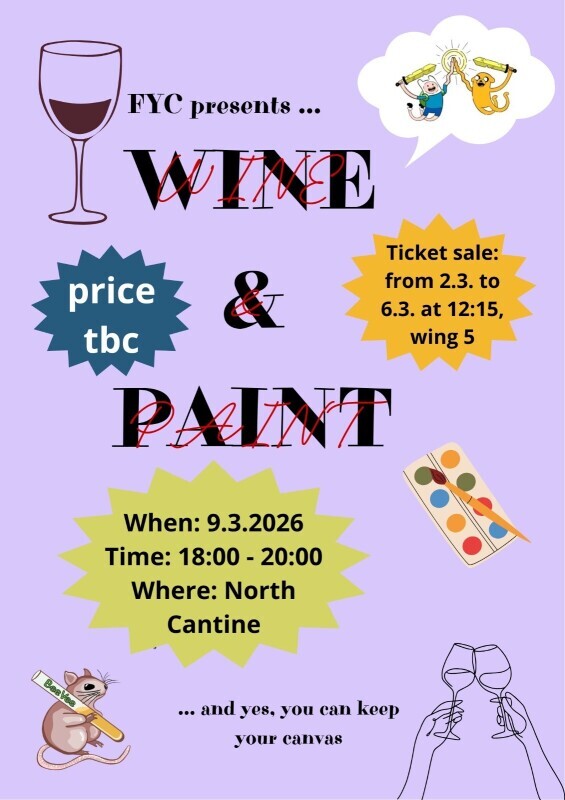 Join us for a relaxed evening of painting, music, and bonding with fellow first years. No experience needed, just bring your vibes and get ready to have fun. Whether you come with friends or on your own, it’s the perfect chance to unwind, express yourself, meet new people, and create something you’ll be proud to take home!