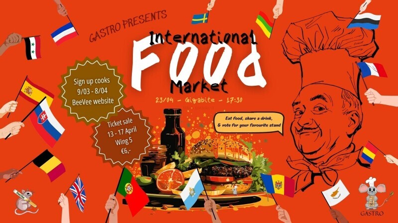 Choose to be a cook and overwhelm your friends with your amazing kitchen skills, or tap into the inner taste tester inside you and come and taste the best foods from the world :) Either way, you'll have a great time at this food market, right in the middle of our own Huygens building
