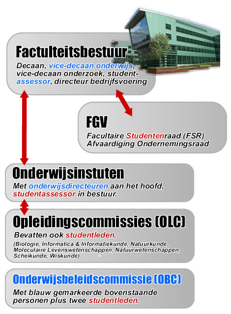 There are a few different ways for students to have a say in the Radboud University. These are depicted in the overview below. (It's unfortunately only in Dutch)